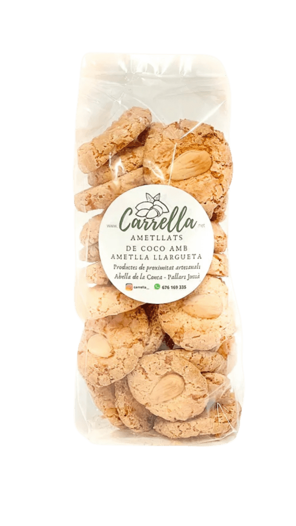 L’ametllat de coco Carrella és una elaboració artesanal que combina el sabor intens de l’ametlla amb la dolçor i l’aroma del coco. Elaborat al nostre obrador amb ingredients seleccionats i amb les nostres ametlles, aquest dolç destaca per la seva textura suau per dins i lleugerament torrada per fora.