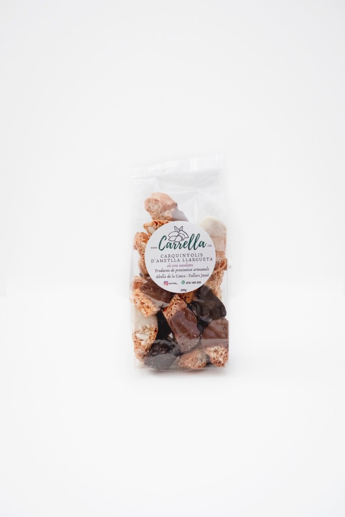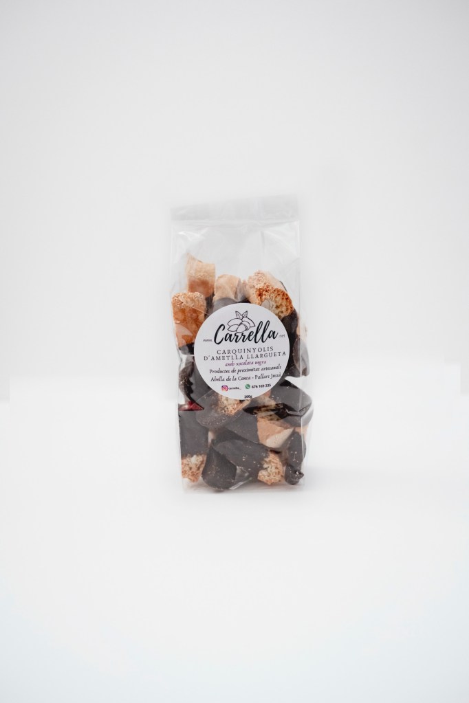 Els carquinyolis de xocolata Carrella són una reinterpretació del carquinyoli tradicional elaborada al nostre obrador. Els preparem artesanalment en petits lots amb ingredients seleccionats, ametlles de qualitat i un toc de xocolata que aporta intensitat i un contrast perfecte amb la textura cruixent del carquinyoli.